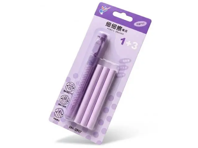 Goma de borrar retráctil.Presentación: blíster.Medidas: 12cm.Incluye 3 goma de borrar y repuesto.