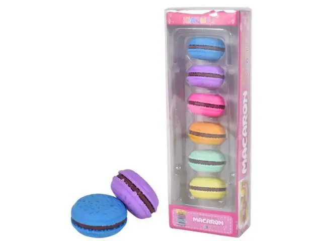 Gomas de borrar con formas de macarons.Contiene: 6 unidades.Medidas: 3cm.